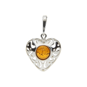 SREBRNY WISIOREK SERCE Z BURSZTYNEM