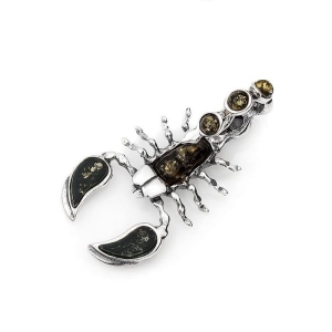 SREBRNY WISIOREK SKORPION Z BURSZTYNEM