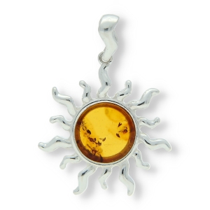 SREBRNY WISIOREK SŁONECZKO Z BURSZTYNEM
