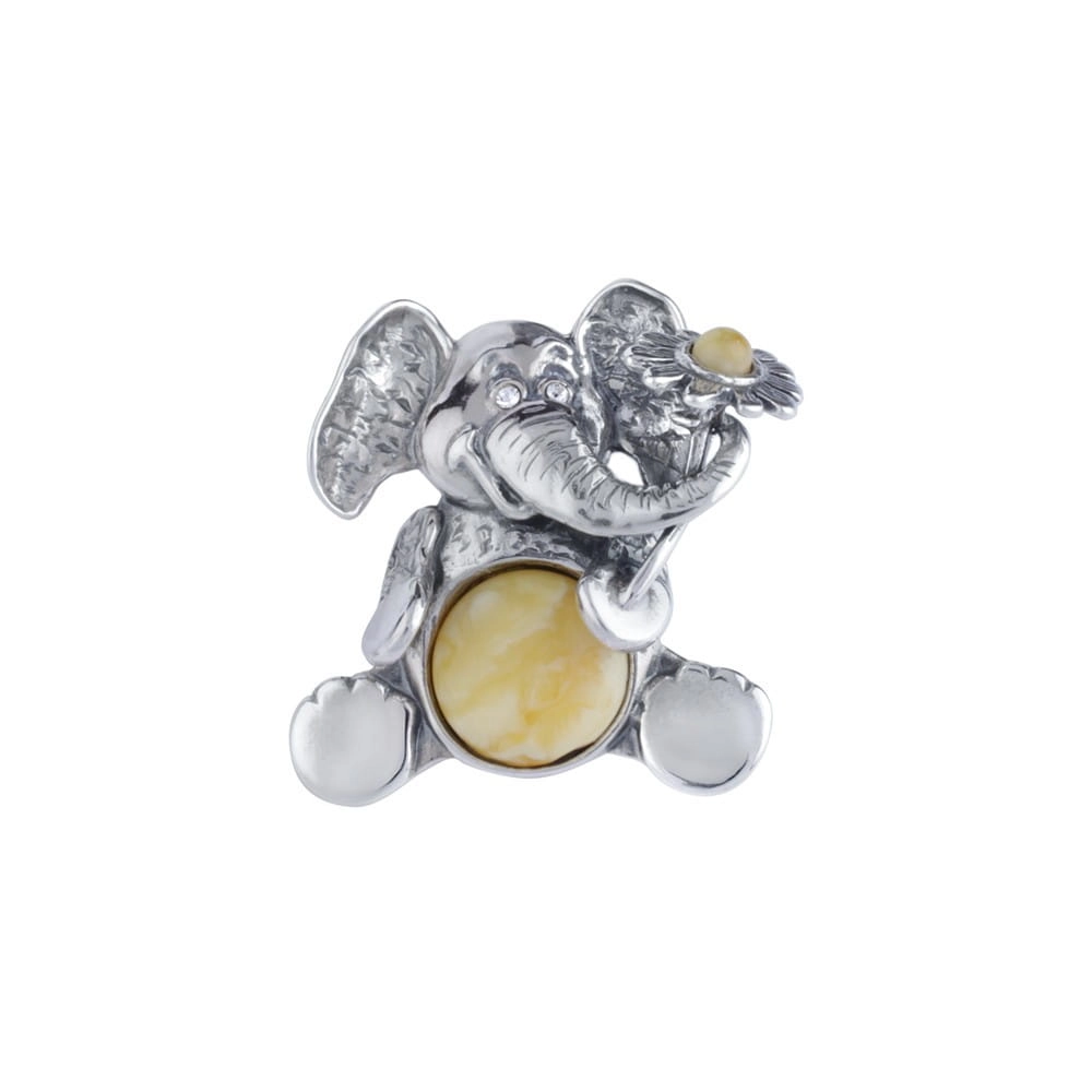 SREBRNY WISIOREK SŁONIK Z BURSZTYNEM