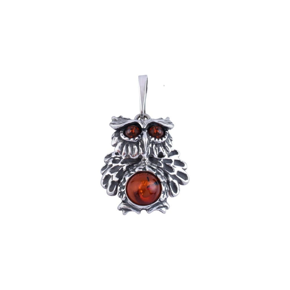 SREBRNY WISIOREK SÓWA Z BURSZTYNEM