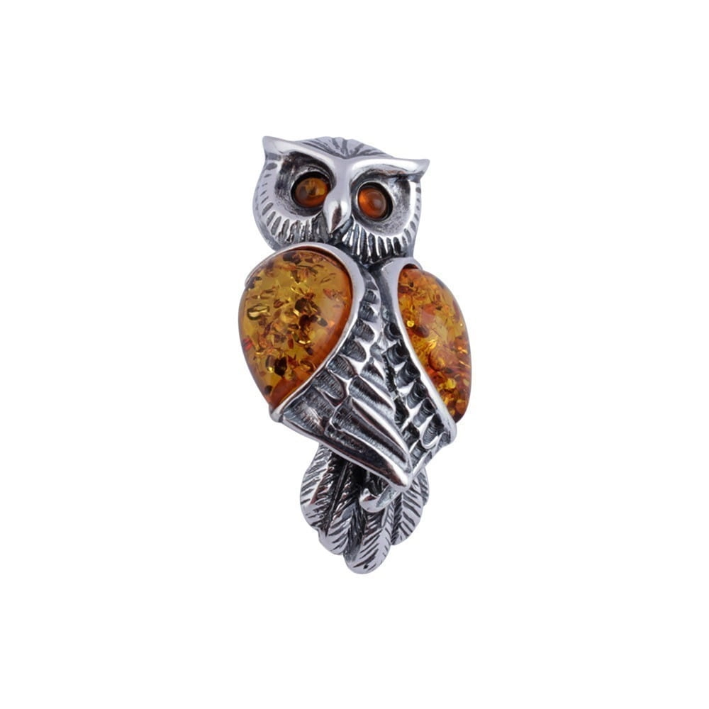 SREBRNY WISIOREK SOWA Z BURSZTYNEM