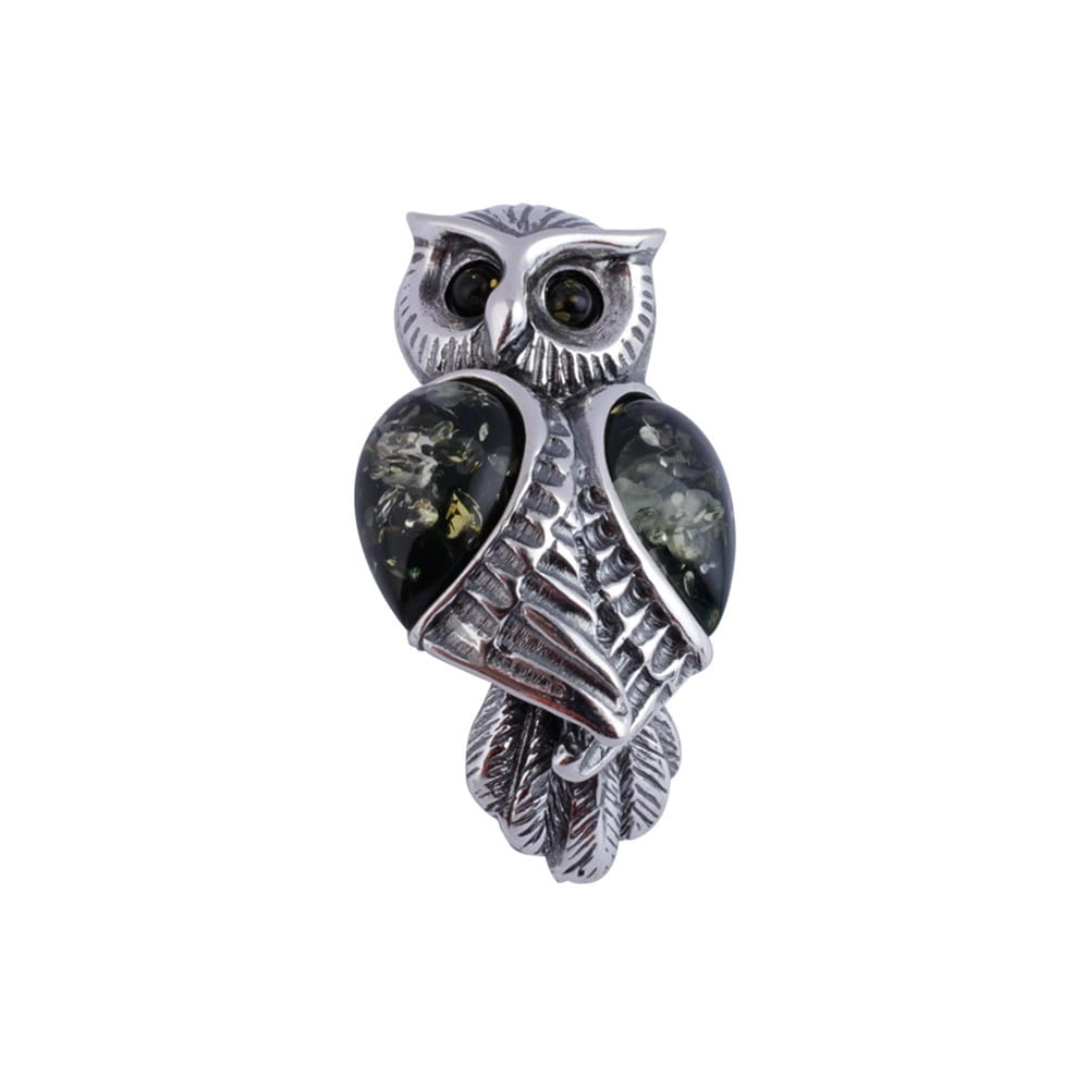 SREBRNY WISIOREK SOWA Z BURSZTYNEM