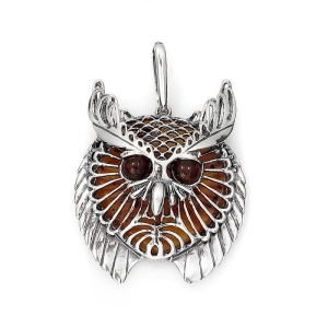 SREBRNY WISIOREK SOWA Z BURSZTYNEM