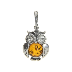 SREBRNY WISIOREK SÓWKA Z BURSZTYNEM