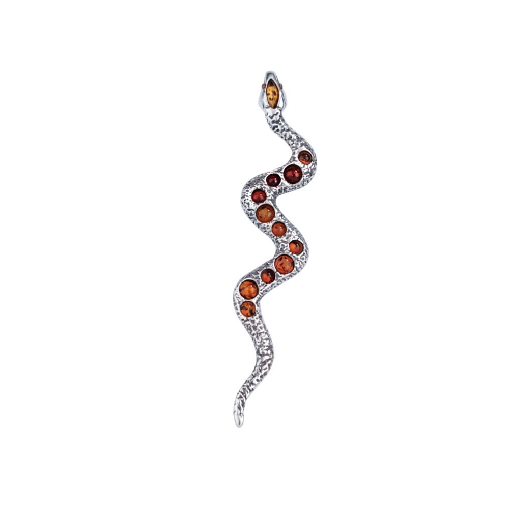 SREBRNY WISIOREK WĄŻ Z BURSZTYNEM