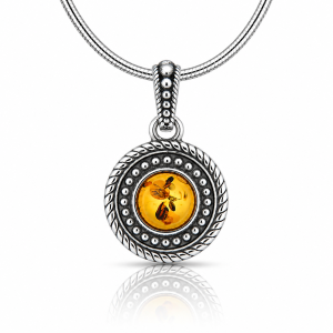 SREBRNY WISIOREK Z BURSZTYNEM – KOŁO