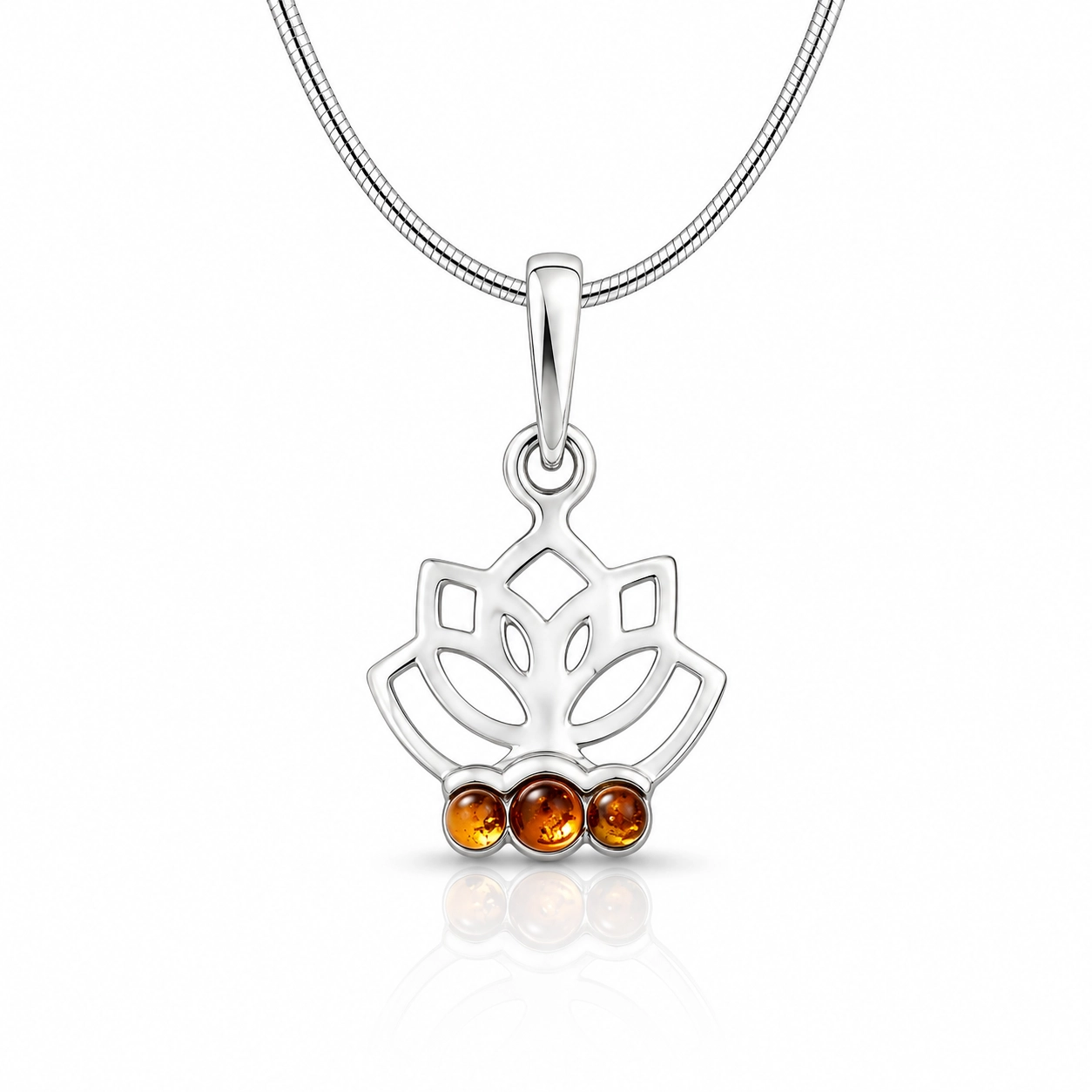SREBRNY WISIOREK Z BURSZTYNEM – KWIAT LOTOSU