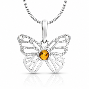 SREBRNY WISIOREK Z BURSZTYNEM – MOTYL