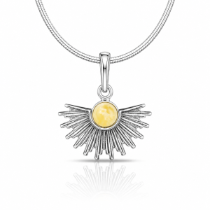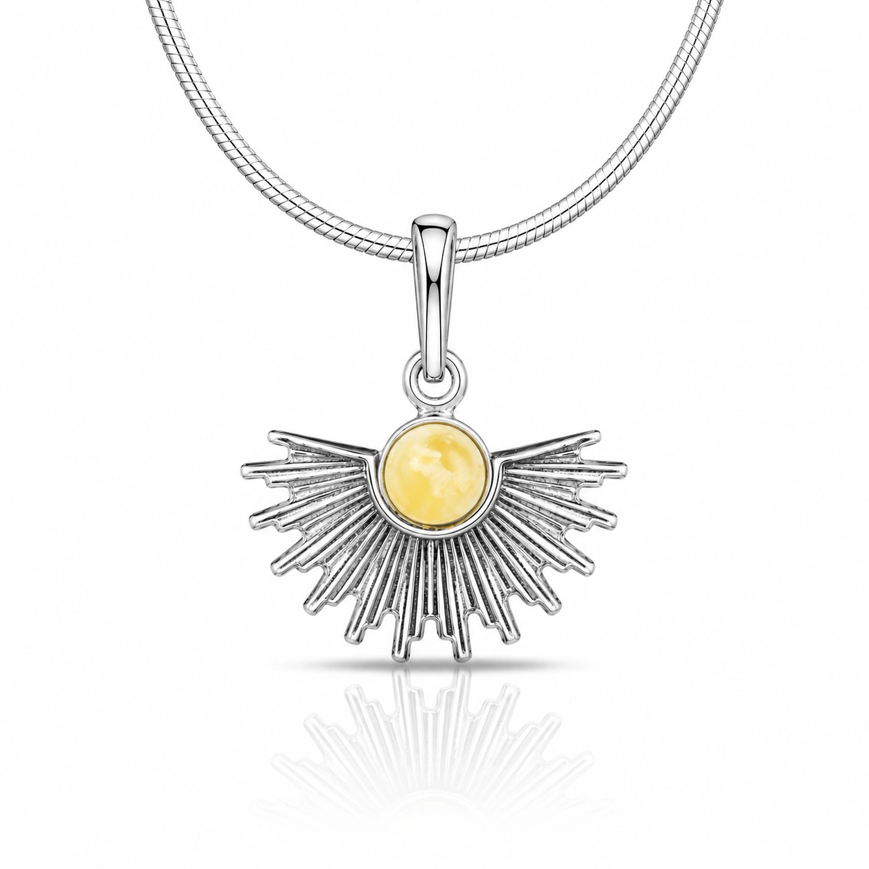 SREBRNY WISIOREK Z BURSZTYNEM – PÓŁ SŁOŃCE