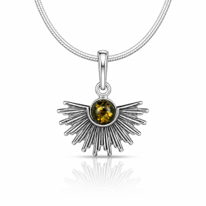 SREBRNY WISIOREK Z BURSZTYNEM – PÓŁ SŁOŃCE
