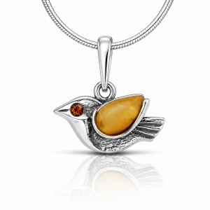 Subtelny wisiorek w formie ptaszka z jasnym, mlecznym bursztynem to propozycja dla miłośników delikatnej biżuterii. Jasny kamień nadaje całości lekkości i świeżości, a srebrna oprawa pięknie podkreśla jego naturalny charakter. Kompozycja jest harmonijna i niezwykle elegancka.