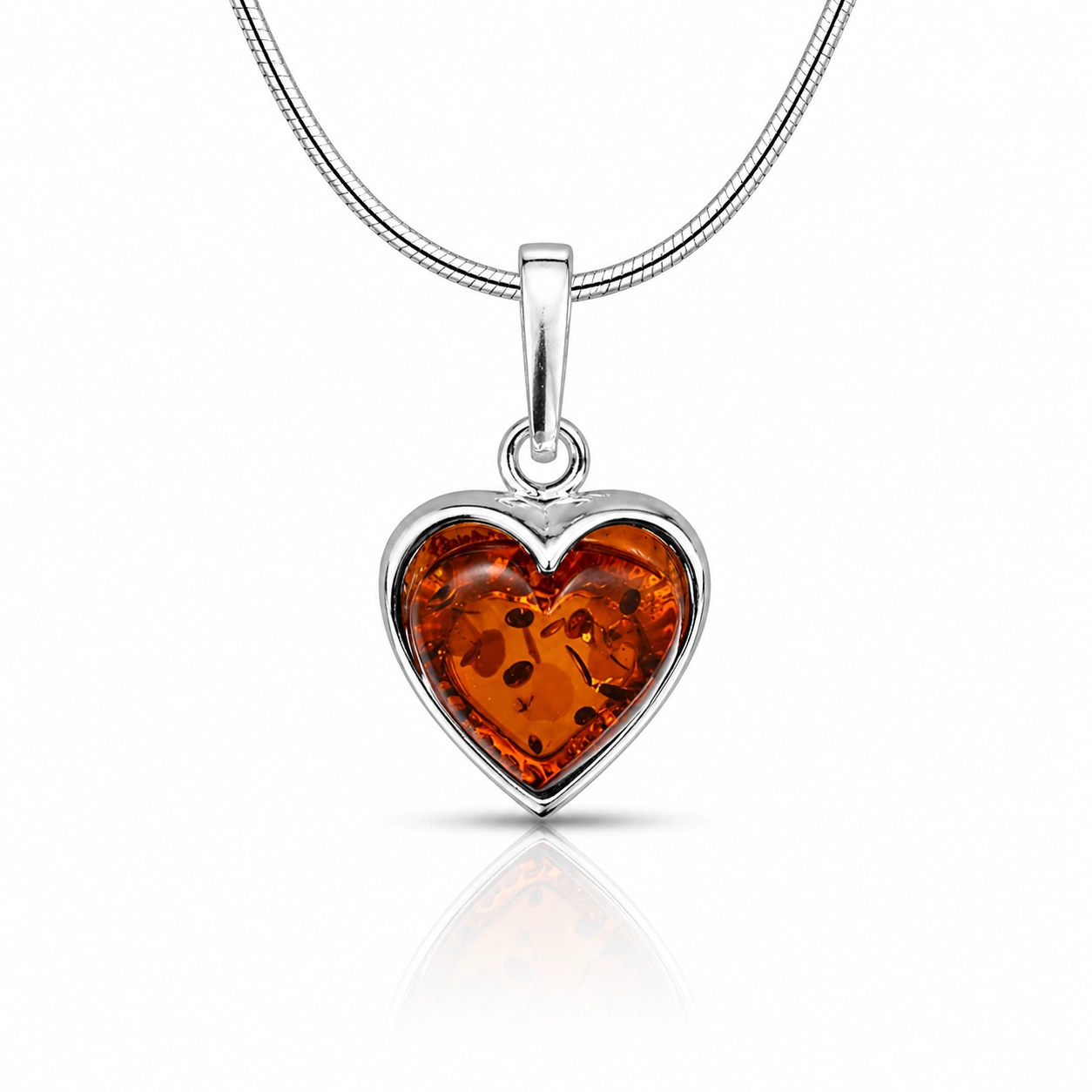 SREBRNY WISIOREK Z BURSZTYNEM – SERCE