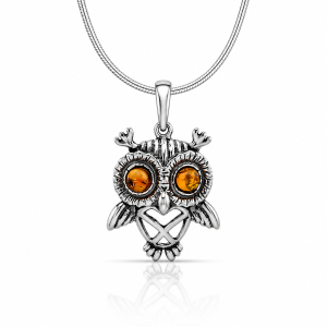 SREBRNY WISIOREK Z BURSZTYNEM – SOWA