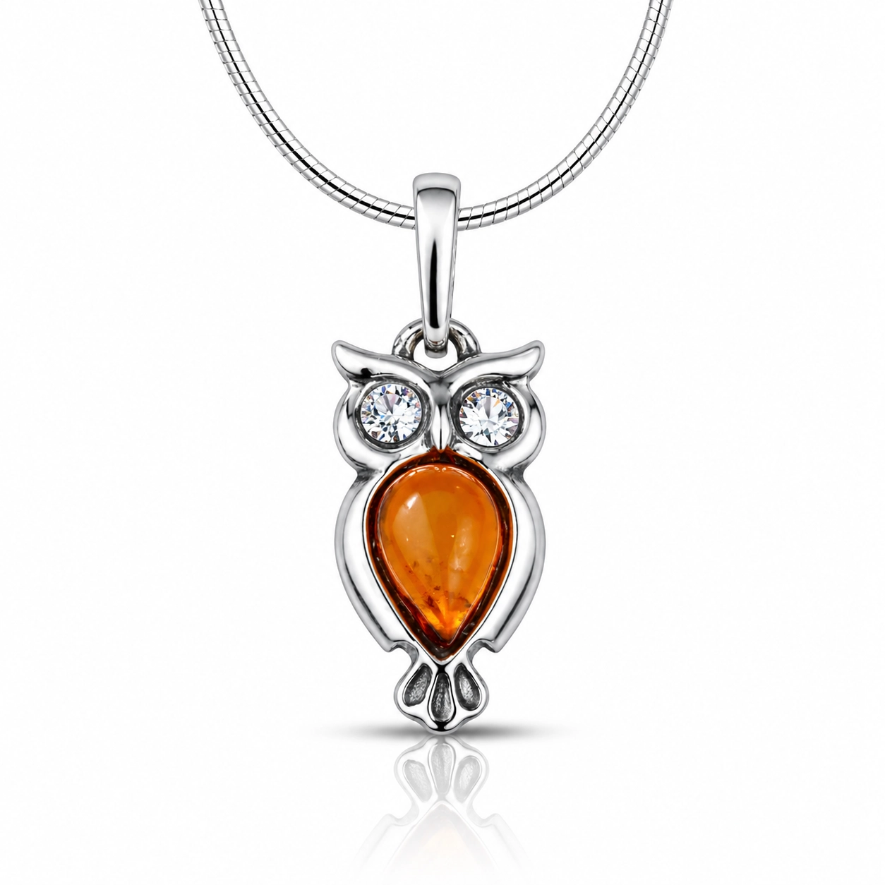 SREBRNY WISIOREK Z BURSZTYNEM – SOWA