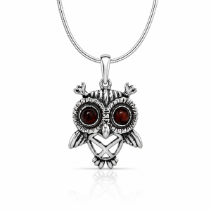 SREBRNY WISIOREK Z BURSZTYNEM – SOWA