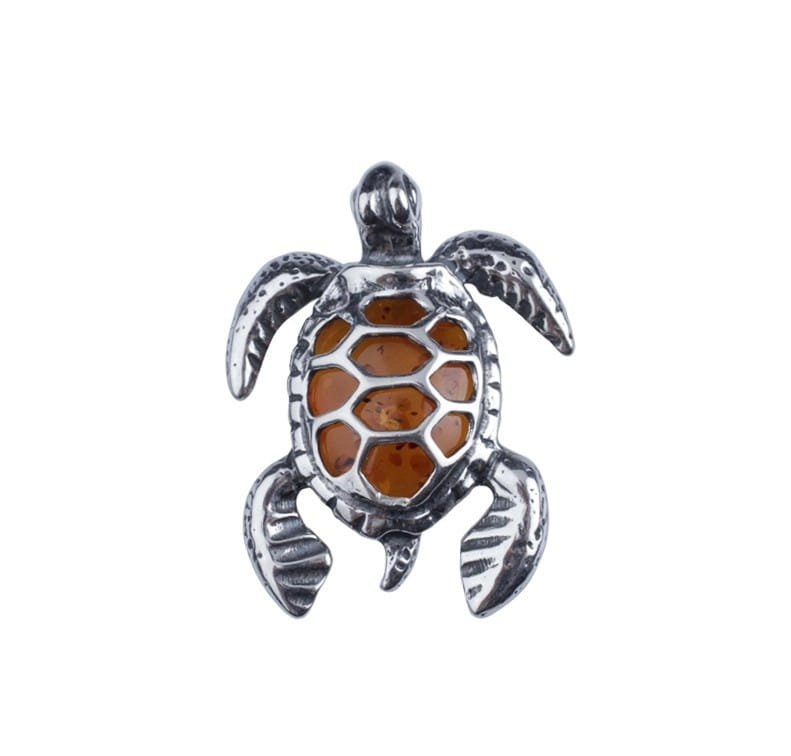 SREBRNY WISIOREK ŻÓŁW Z BURSZTYNEM