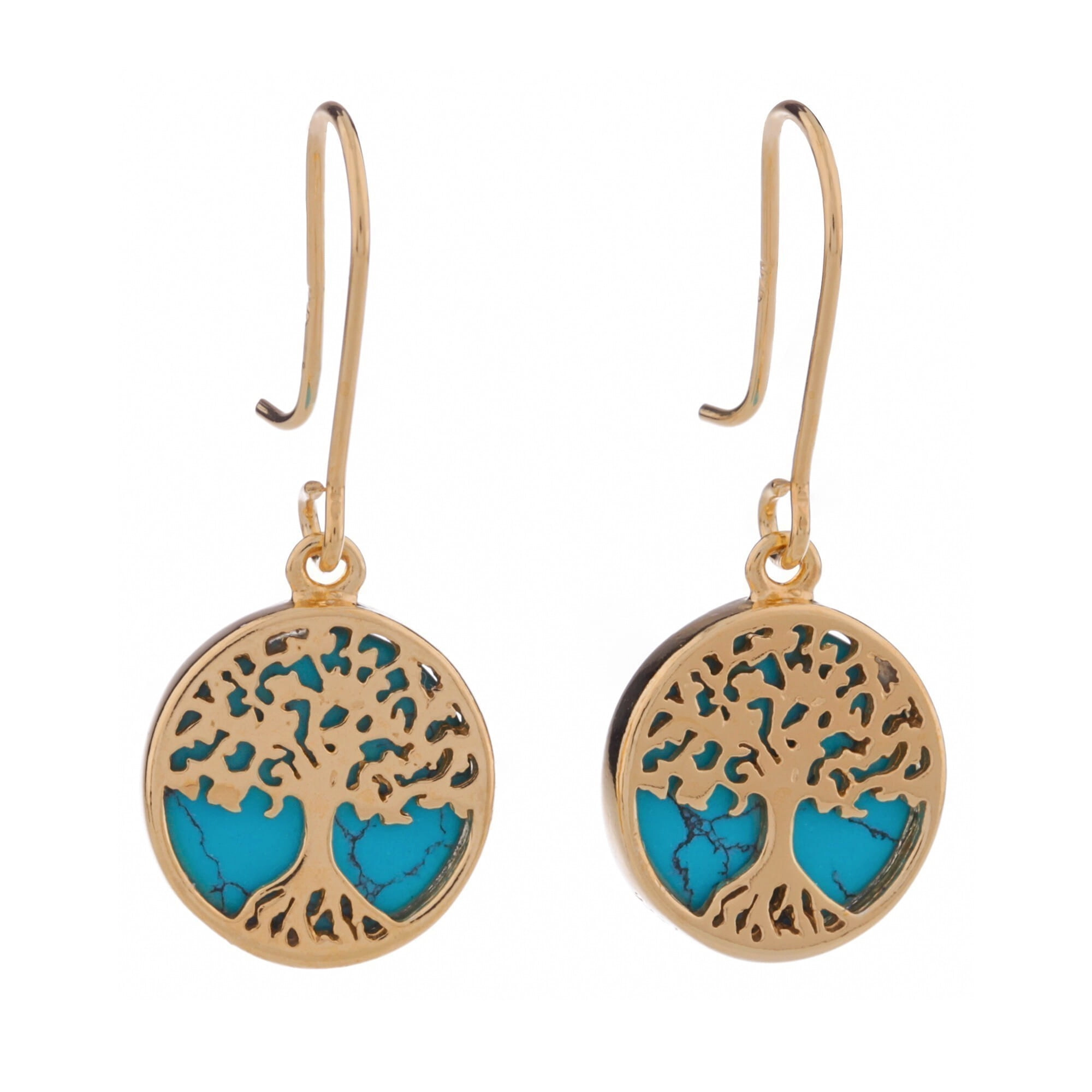 ZŁOTE KOLCZYKI DRZEWKA Z TURKUSEM SREBRO
