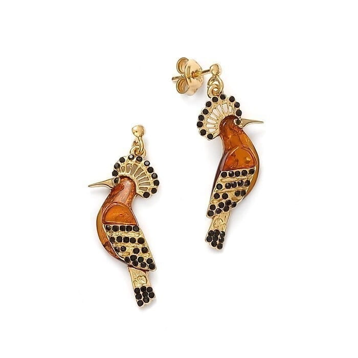 ZŁOTE KOLCZYKI DUDKI Z BURSZTYNEM SREBRO