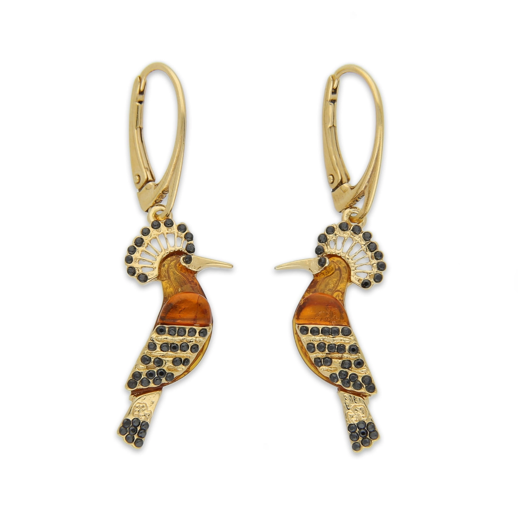 ZŁOTE KOLCZYKI DUDKI Z BURSZTYNEM