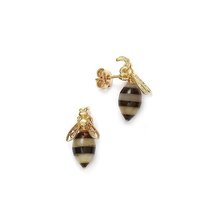 ZŁOTE KOLCZYKI PSZCZÓŁKI Z BURSZTYNEM SREBRO