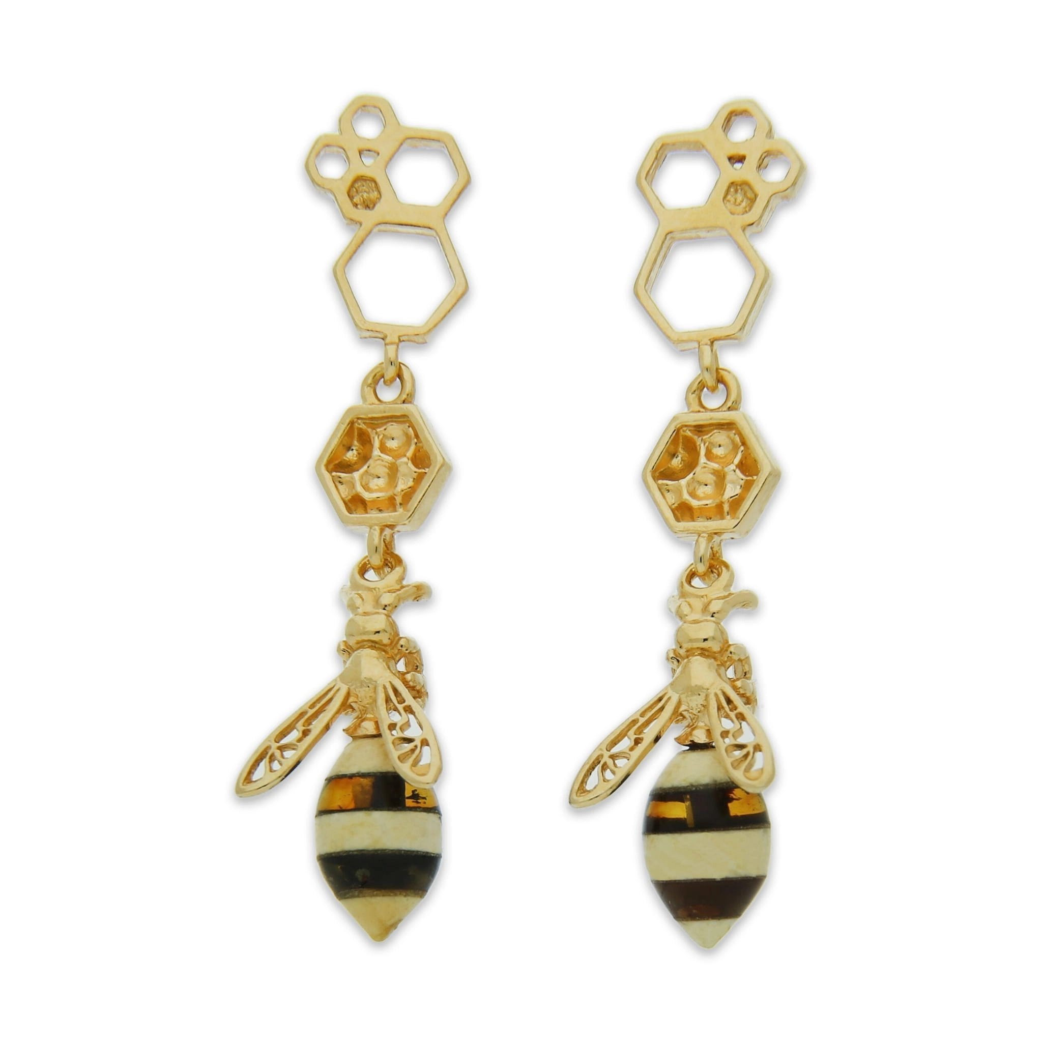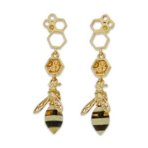 ZŁOTE KOLCZYKI PSZCZÓŁKI Z BURSZTYNEM
