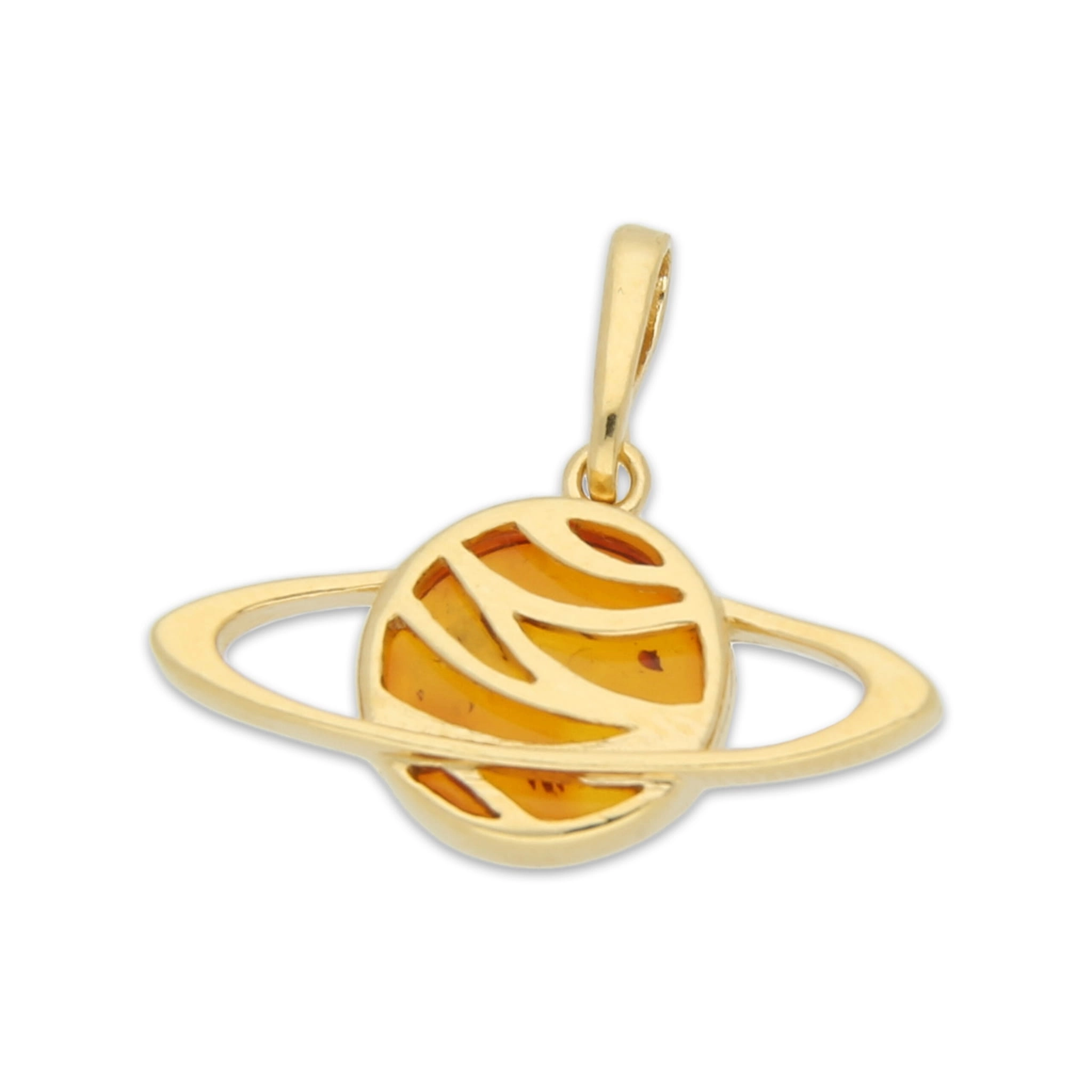 ZŁOTY WISIOR SATURN Z BURSZTYNEM