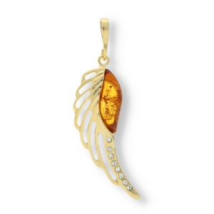 ZŁOTY WISIOR SKRZYDŁO Z BURSZTYNEM