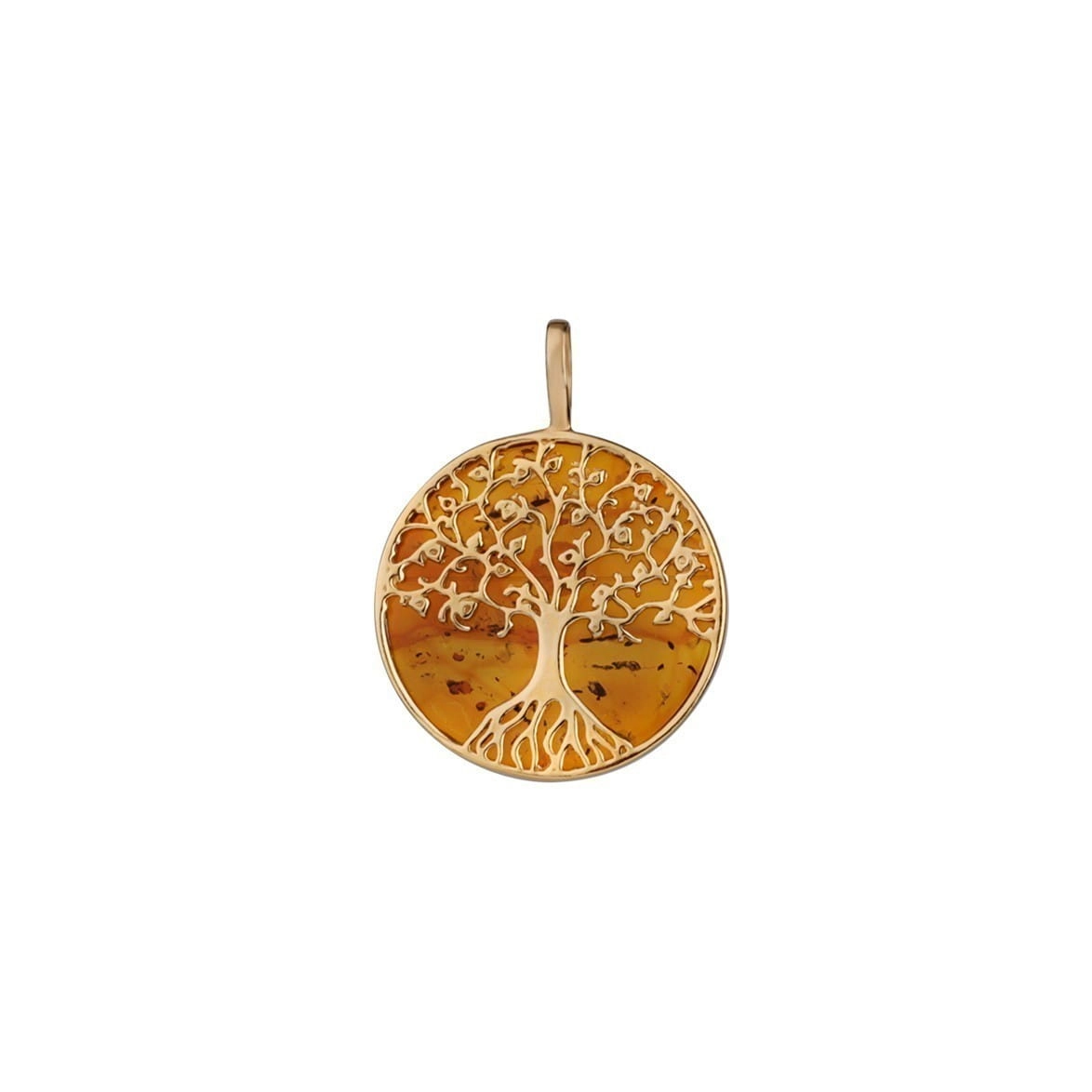 ZŁOTY WISIOREK DRZEWKO Z BURSZTYNEM SREBRO