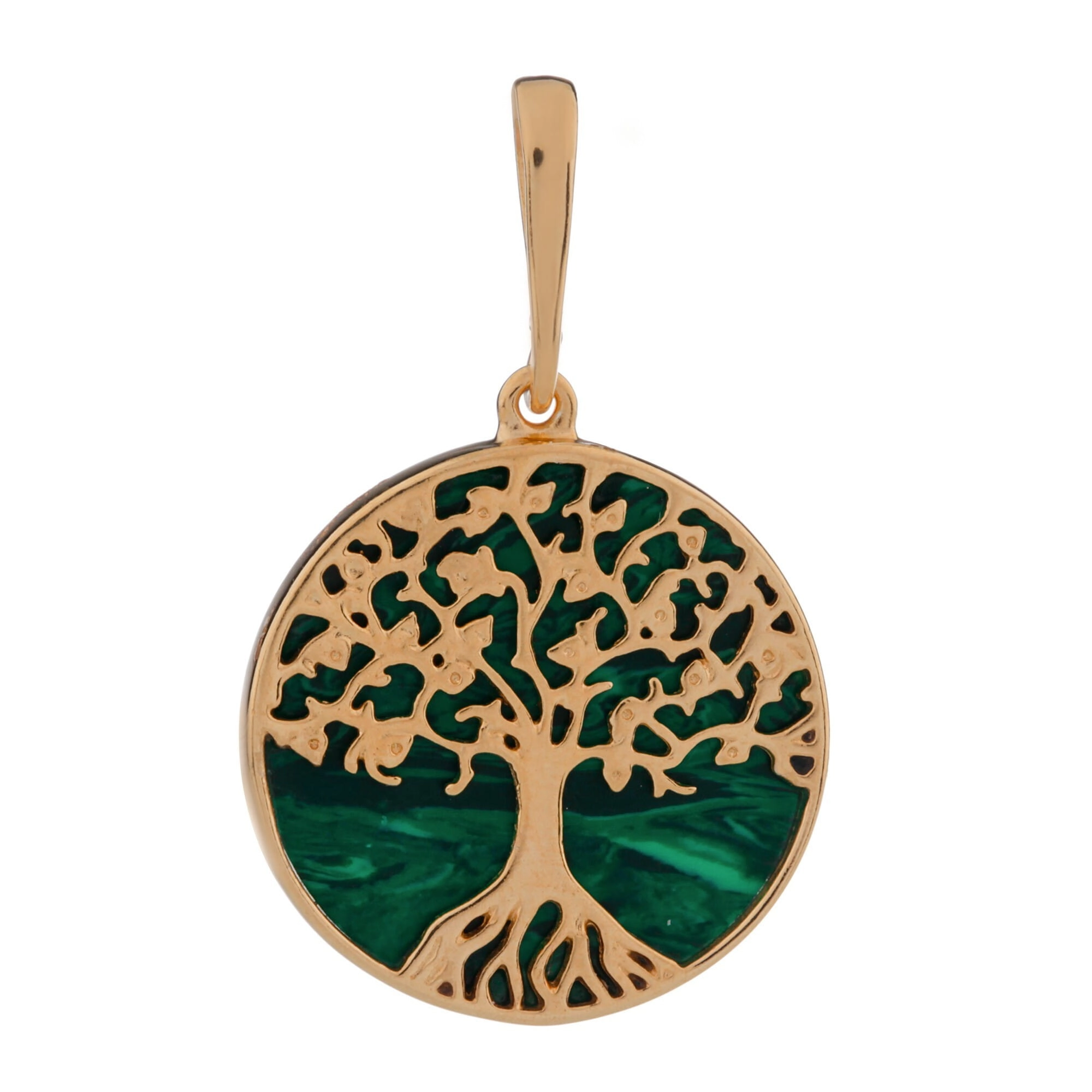 ZŁOTY WISIOREK DRZEWKO Z MALACHITEM SREBRO