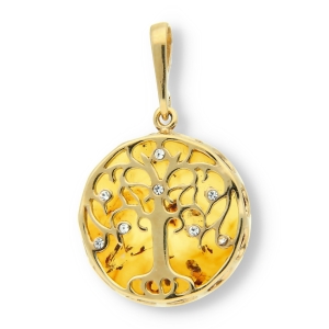 ZŁOTY WISIOREK DRZEWO Z BURSZTYNEM