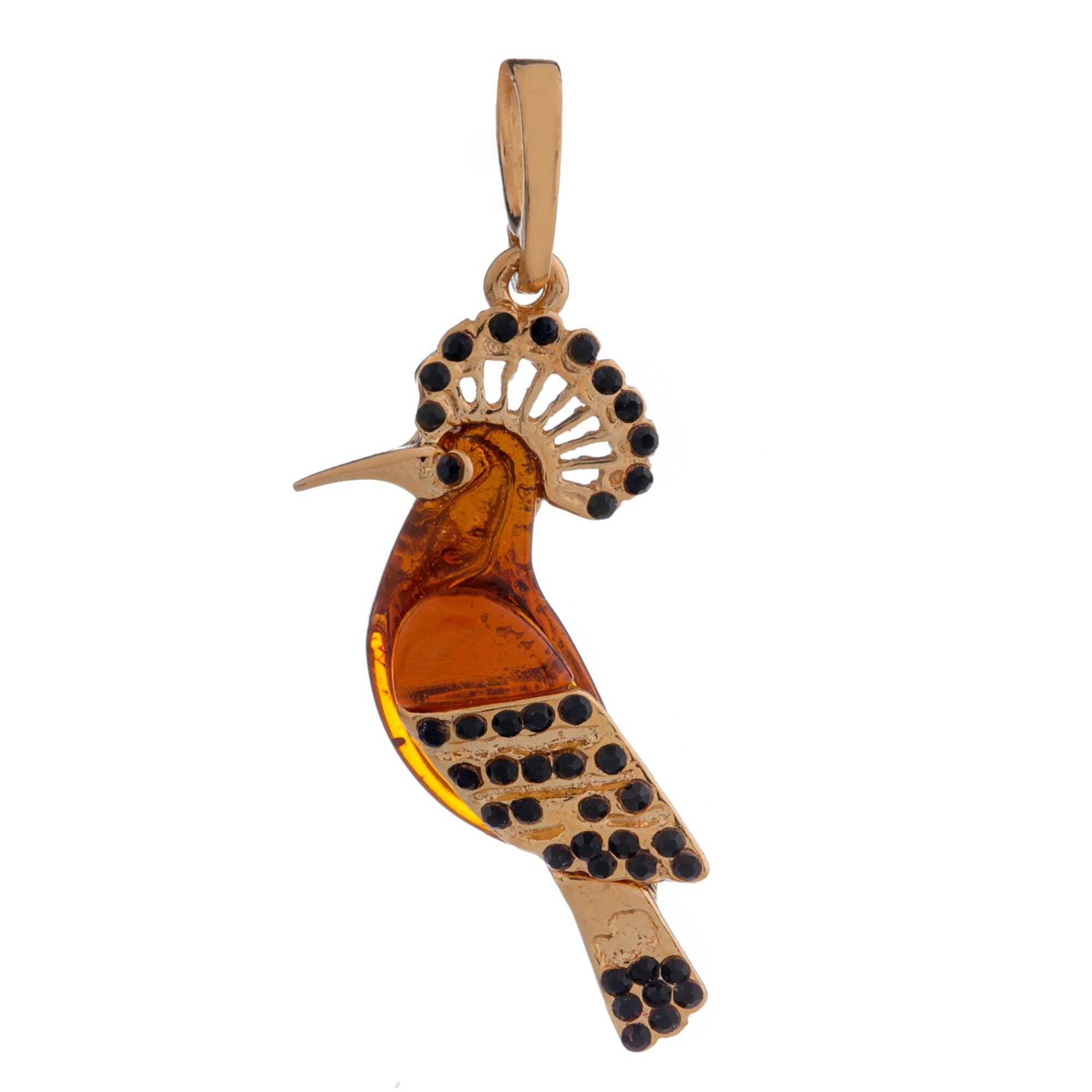ZŁOTY WISIOREK DUDEK Z BURSZTYNEM