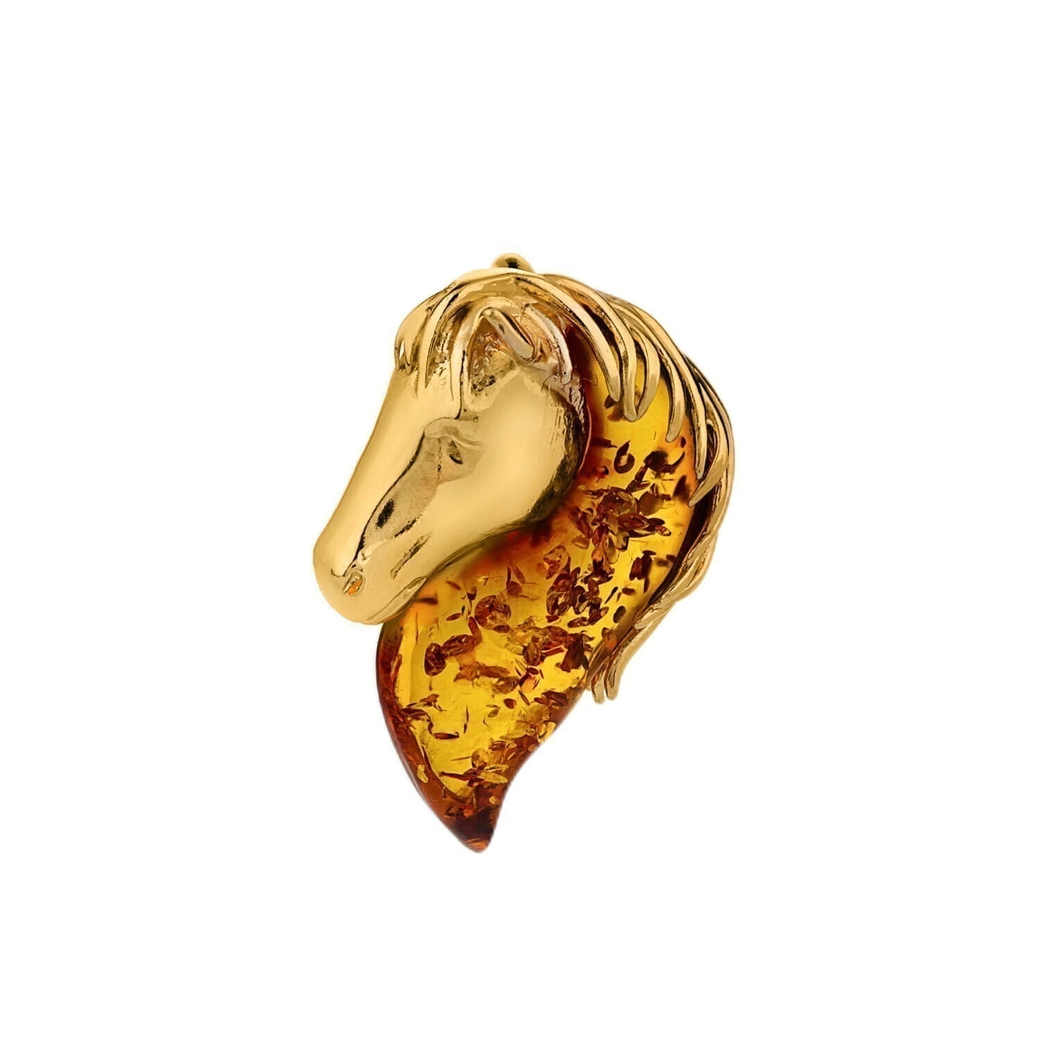 ZŁOTY WISIOREK GŁOWA KONIA Z BURSZTYNEM