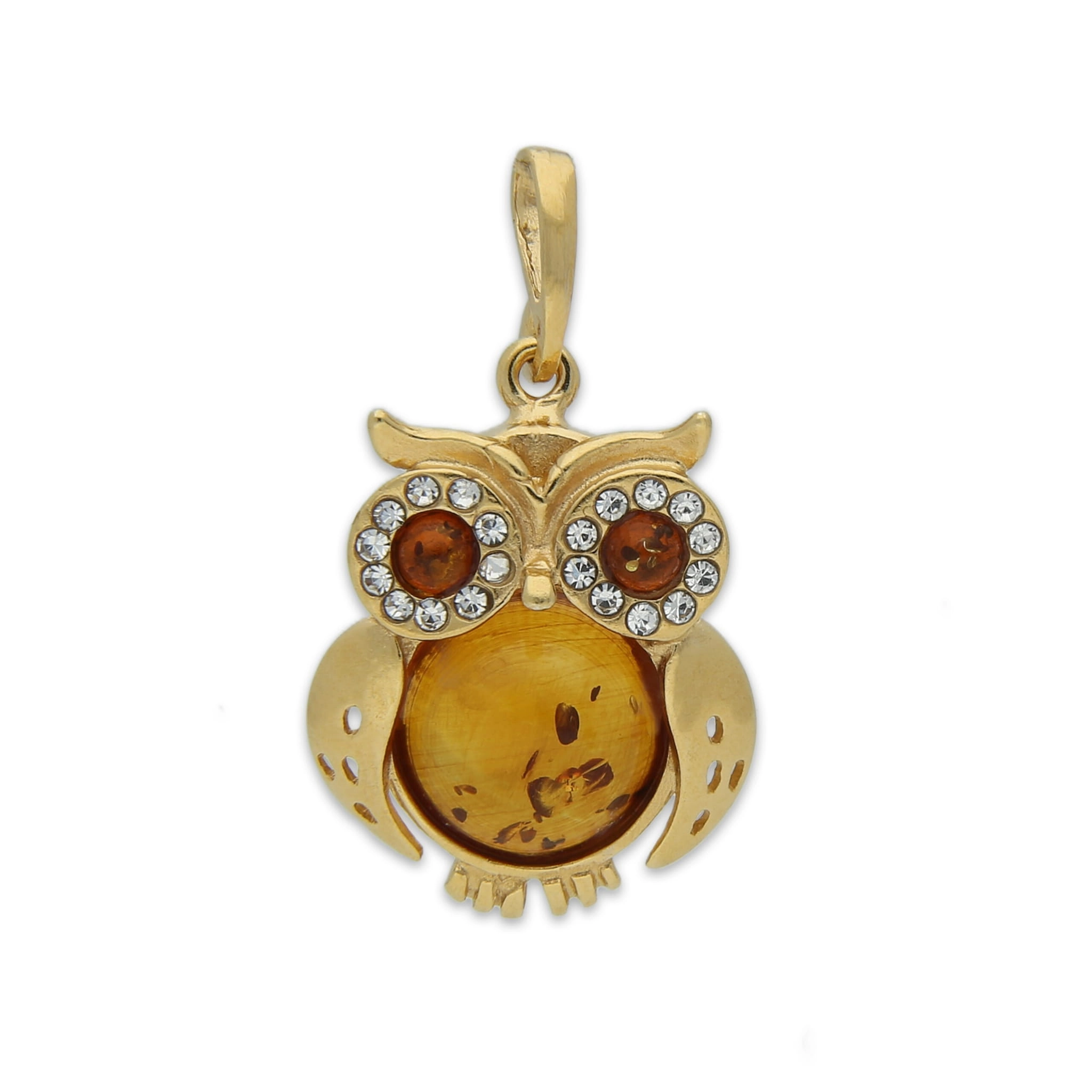 ZŁOTY WISIOREK SÓWKA Z BURSZTYNEM